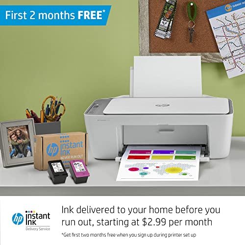 HP DeskJet 2755 All-in-One Inkjet Printer Scanner & Copier w/Mobile Print, Wireless Printers for Home and Office, Instant Ink Ready, Built in WiFi, 3XV17A – White (Renewed)
